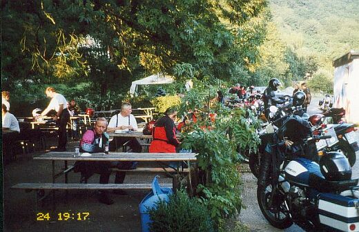 Man muss wissen, dass man dort sein Mopped unmittelbar vor den Außentischen parken kann.